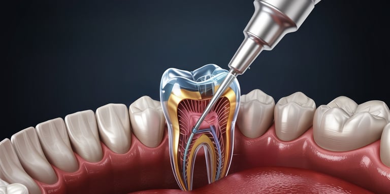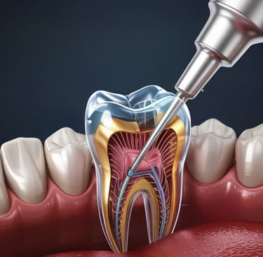 A root canal treatment is a dental procedure used to treat infection or inflammation inside the tooth — specifically in the soft pulp tissue. Instead of removing the entire tooth, this procedure clears out the infected pulp, cleans and disinfects the canals, and seals them with a strong filling. A crown is often added for protection and to restore full function.
