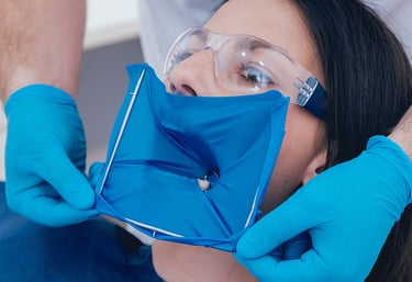 Rubber dam isolation is a technique commonly used in dental procedures to isolate a specific tooth or set of teeth from the rest of the mouth. It's often used during restorative work (such as fillings, root canals, or crowns), as well as for procedures that involve the use of medications or materials that could be harmful if accidentally ingested or inhaled.